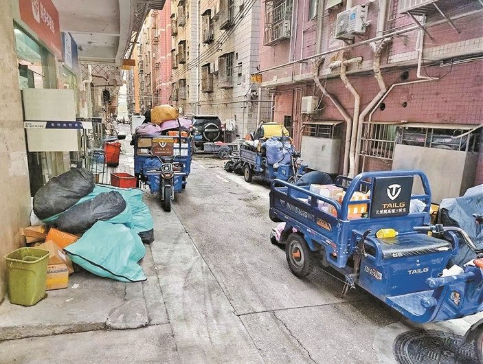 人行道上“横”着三棵大树城管部门:已督促责任单位尽快迁移,预计本周完成